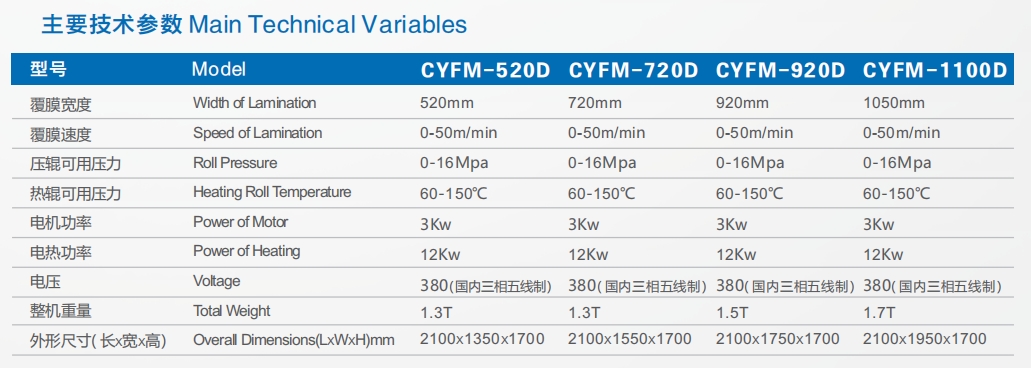 CYFM-1050D型單輥新型預(yù)涂覆膜機設(shè)計先進,結(jié)構(gòu)緊湊。使用方便。工作